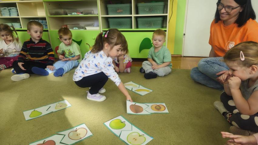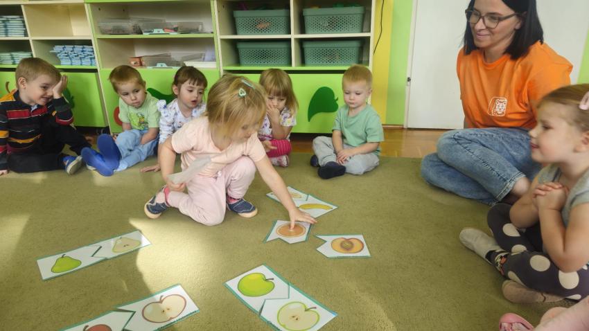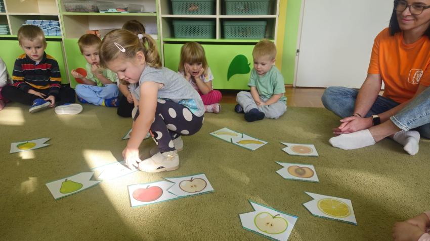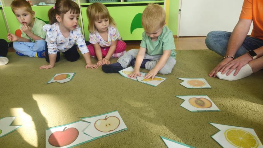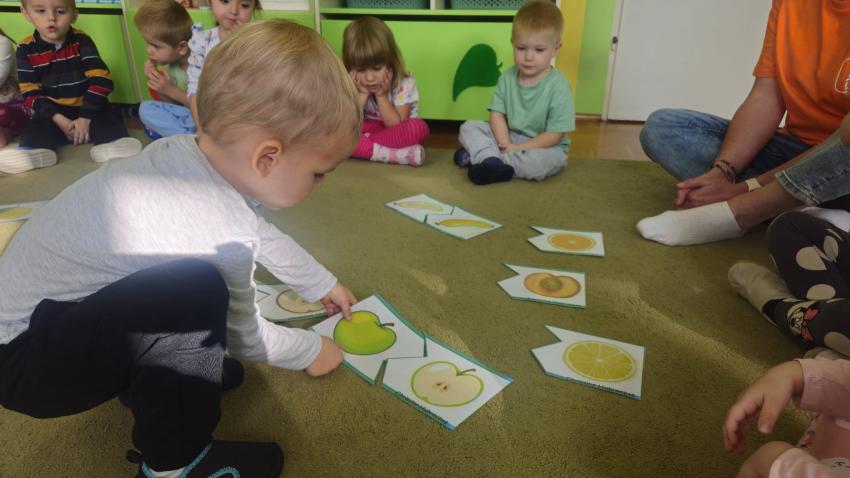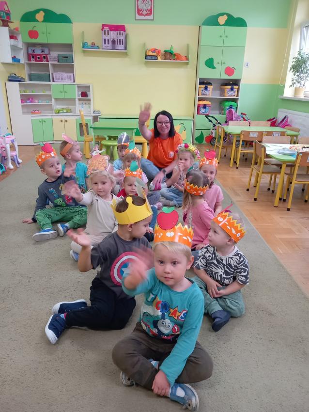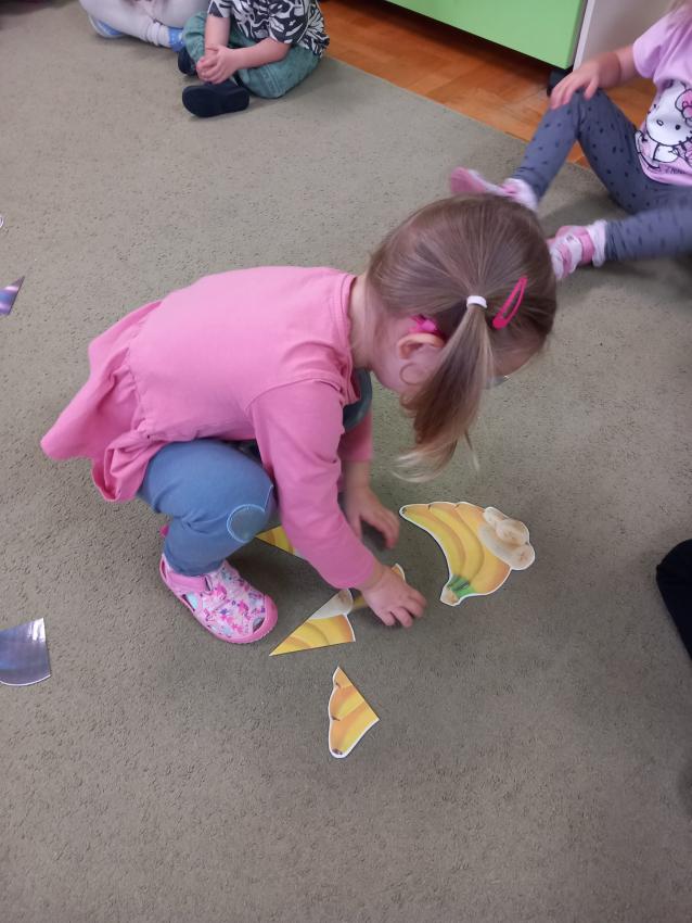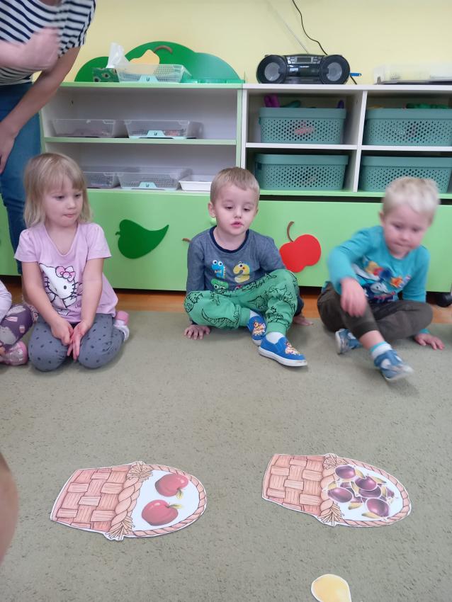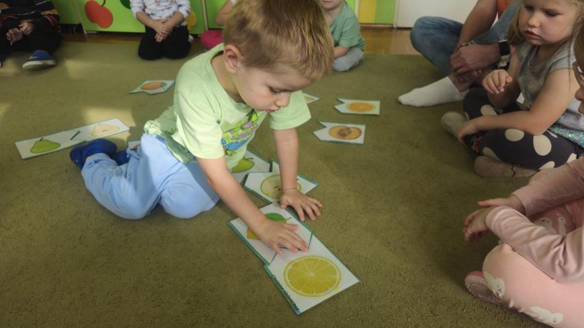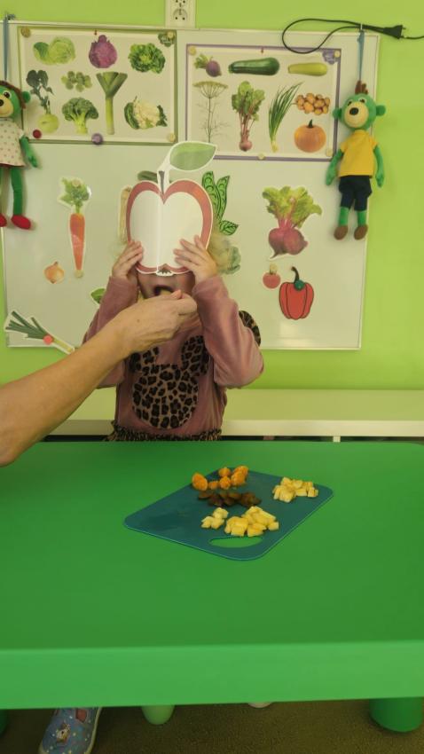 "Mali kucharze" z najmłodszej grupy, po zabawach ,w których rozpoznawały owoce po smaku i wyglądzie ,przygotowały ulubione przysmaki owocowe na talerzu.