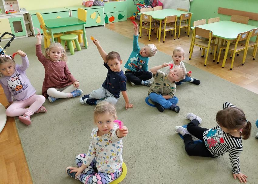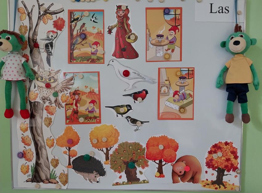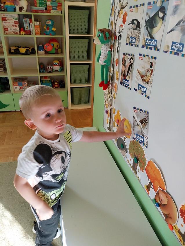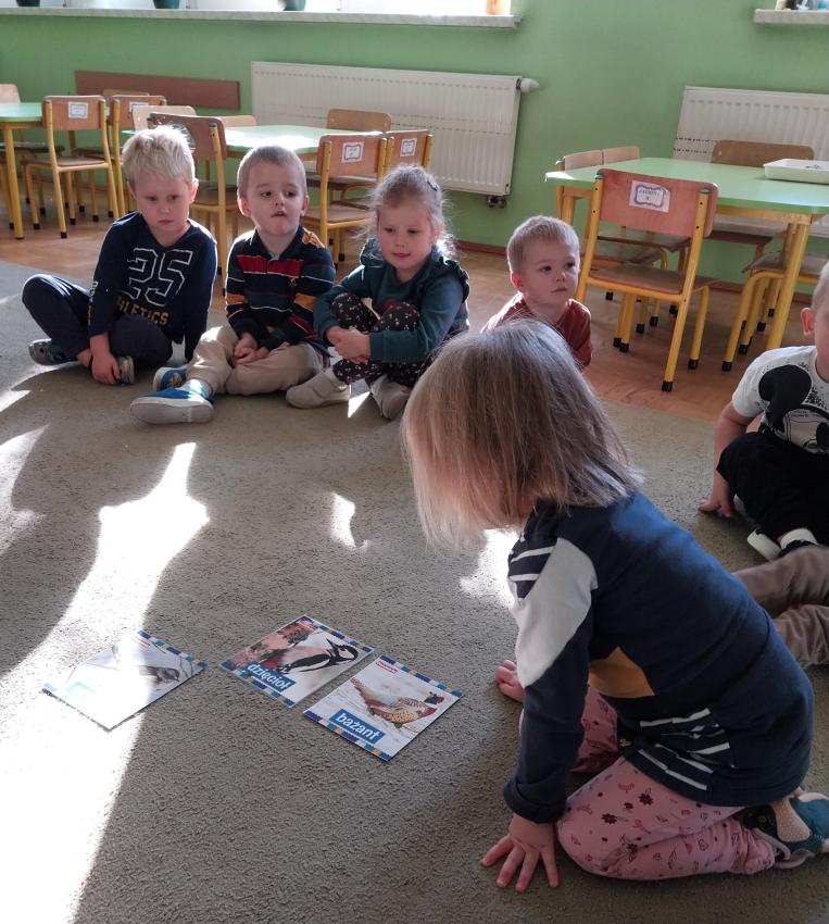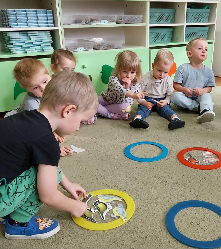 Najmłodsze przedszkolaki na jesiennych zajęciach zapoznawały się, w jaki sposób ptaki przygotowują się do zimy.