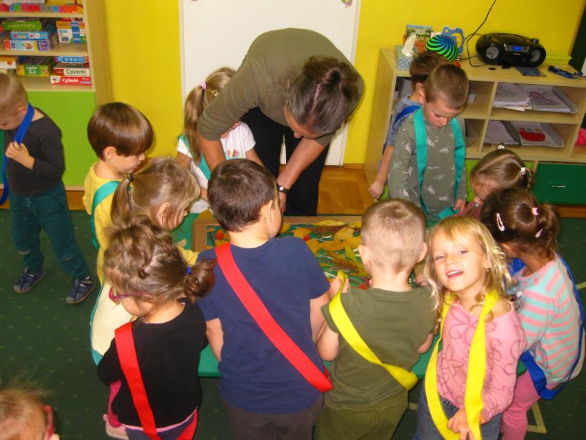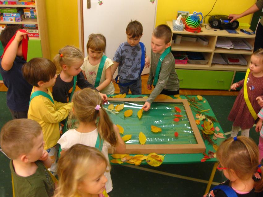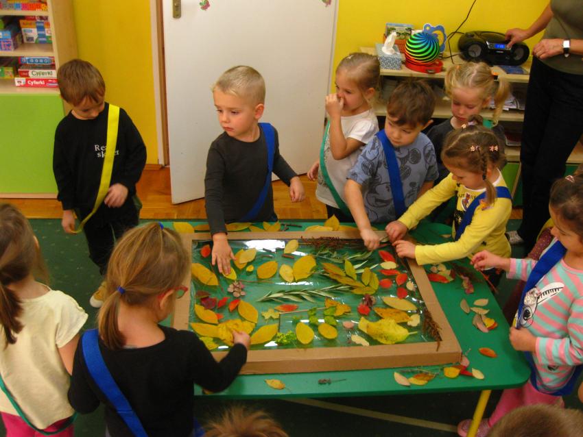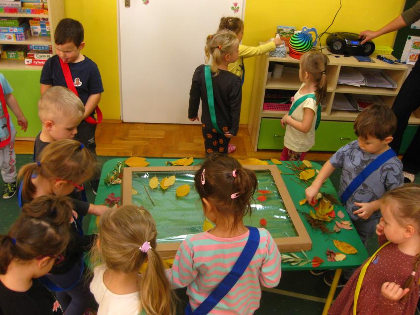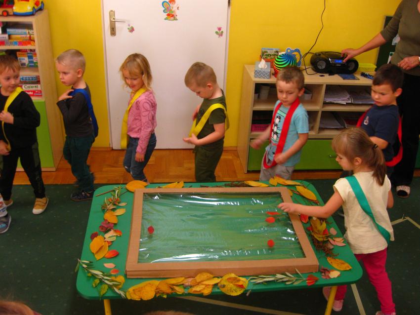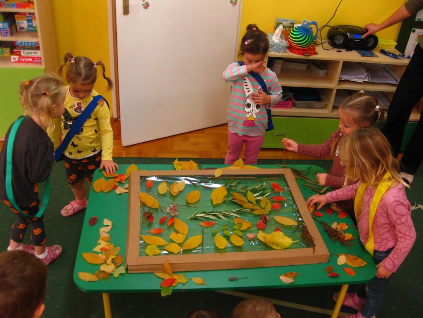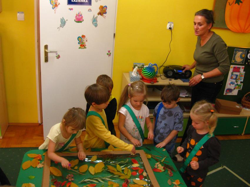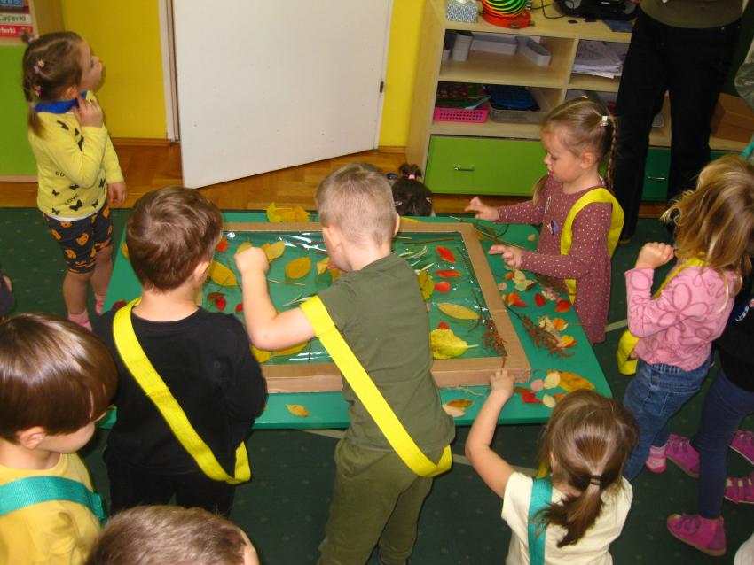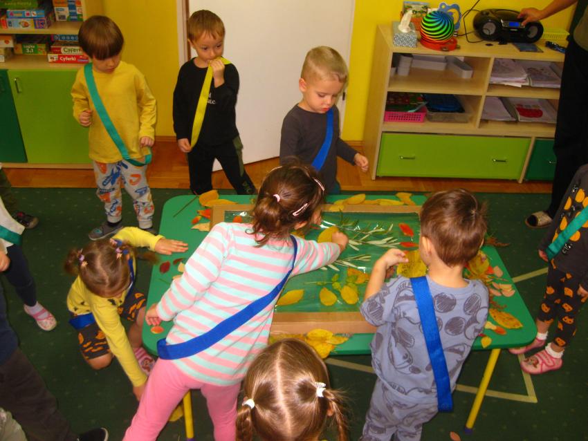 Z kolorowych skarbów przyrody, przy dźwiękach wesołej muzyki, "Jeżyki" tworzyły wspólnie "Jesienny obraz".Prawdziwe dzieło sztuki!