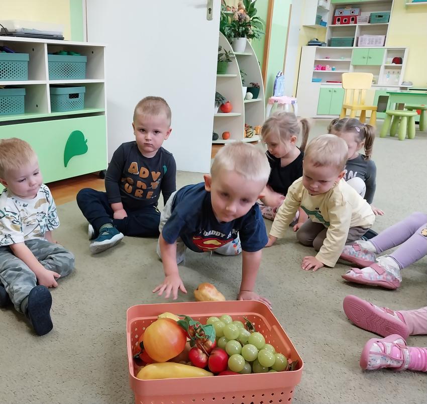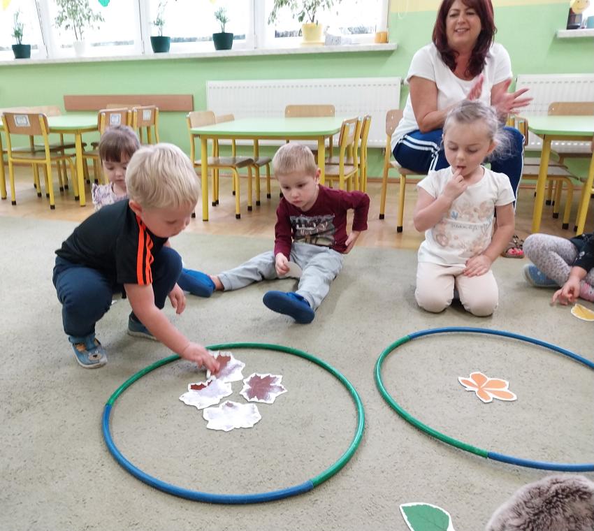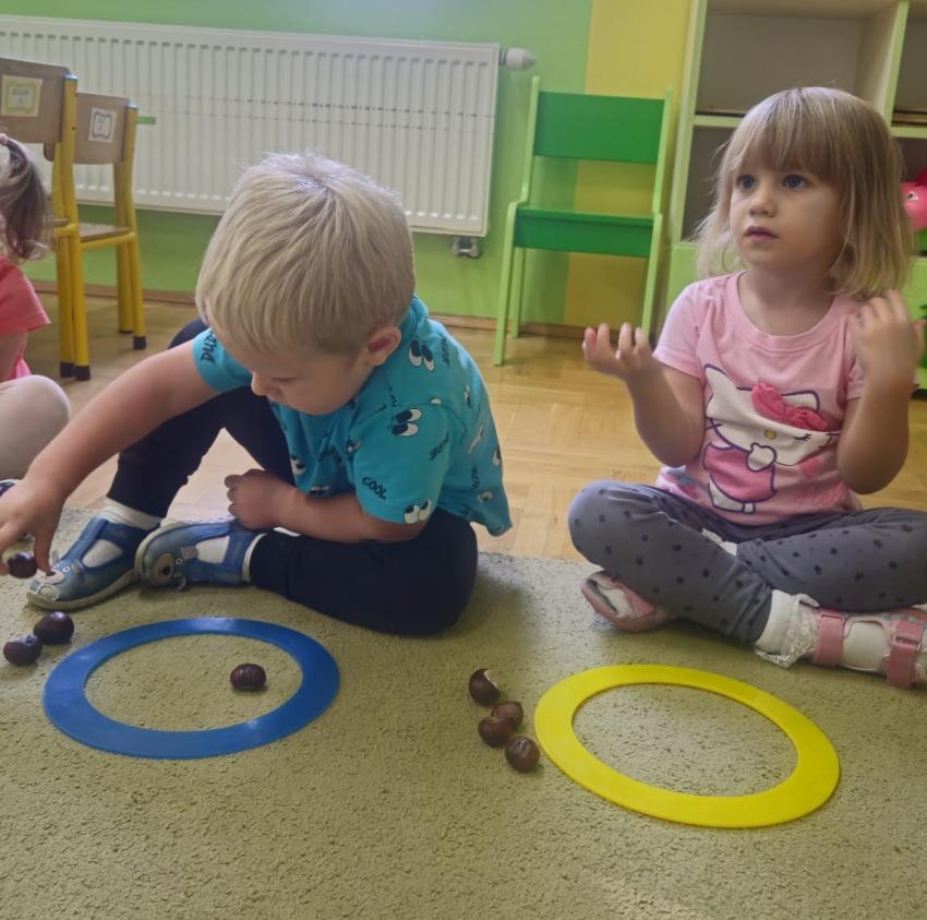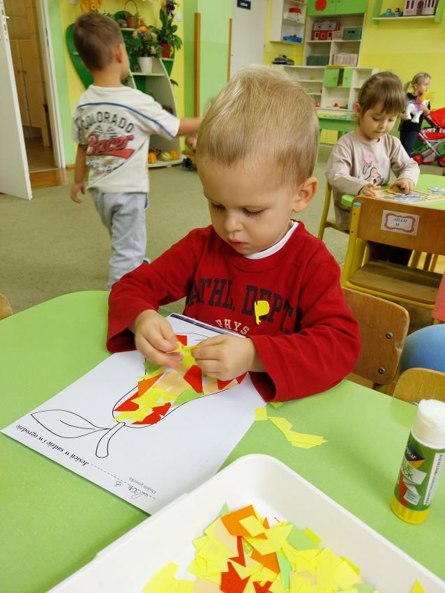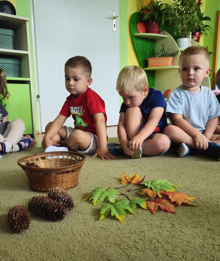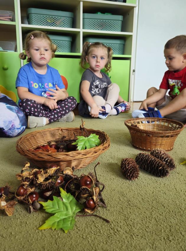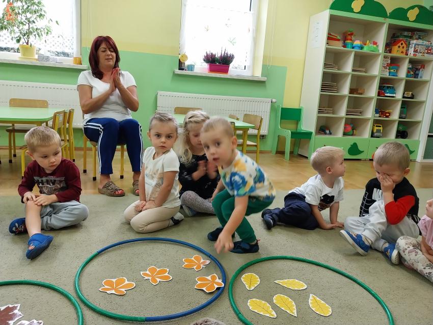 Jesienne zabawy w grupie maluszków.