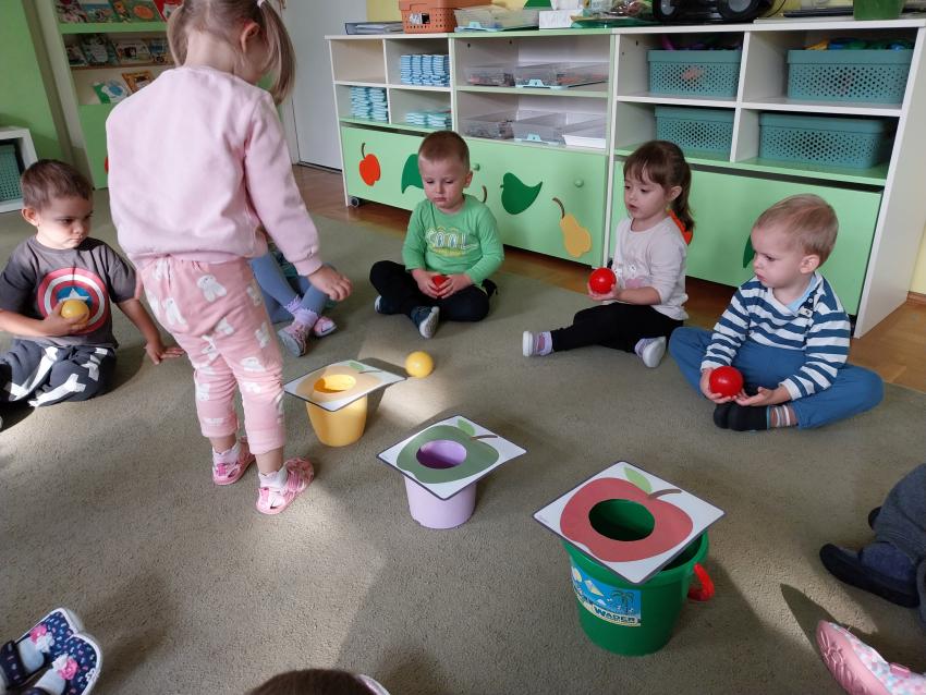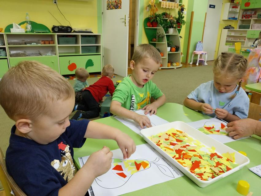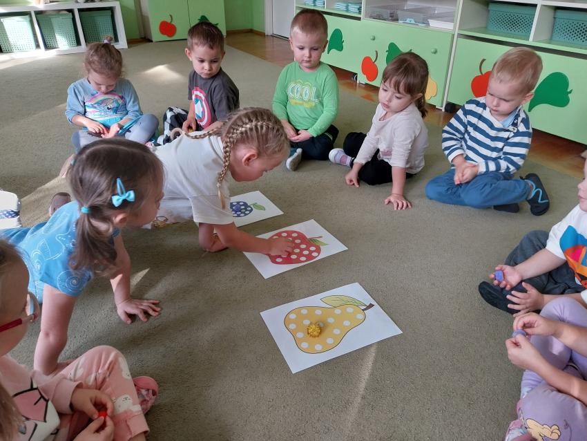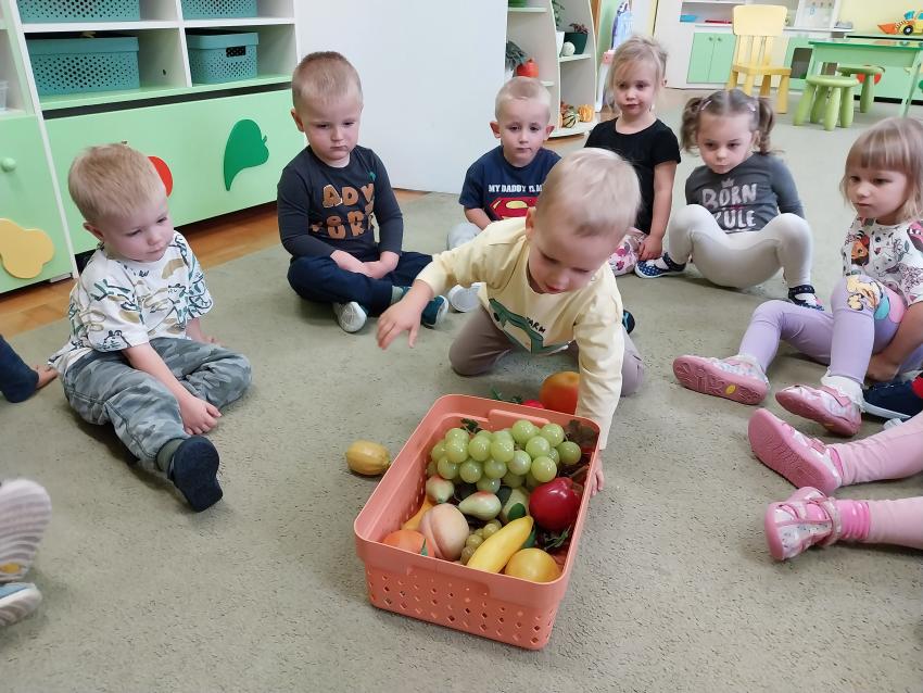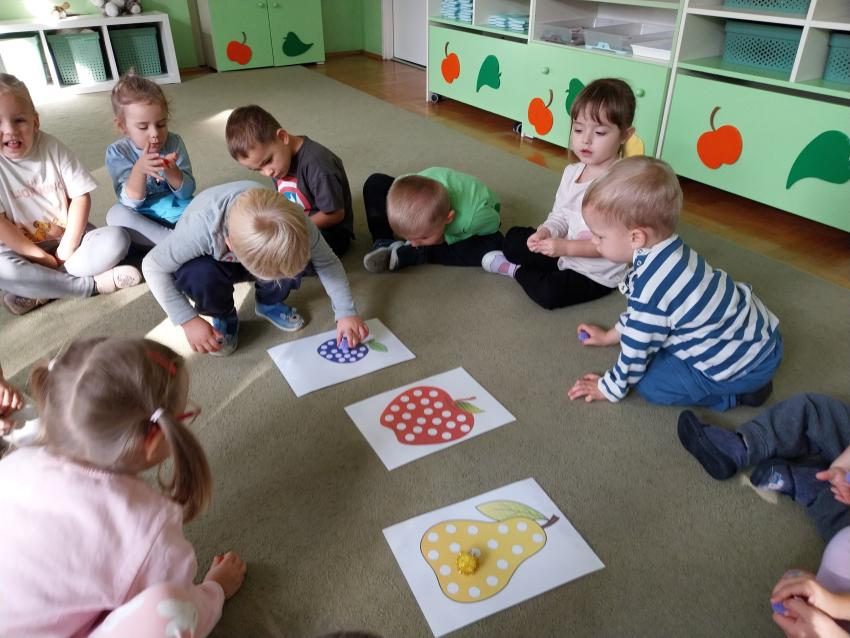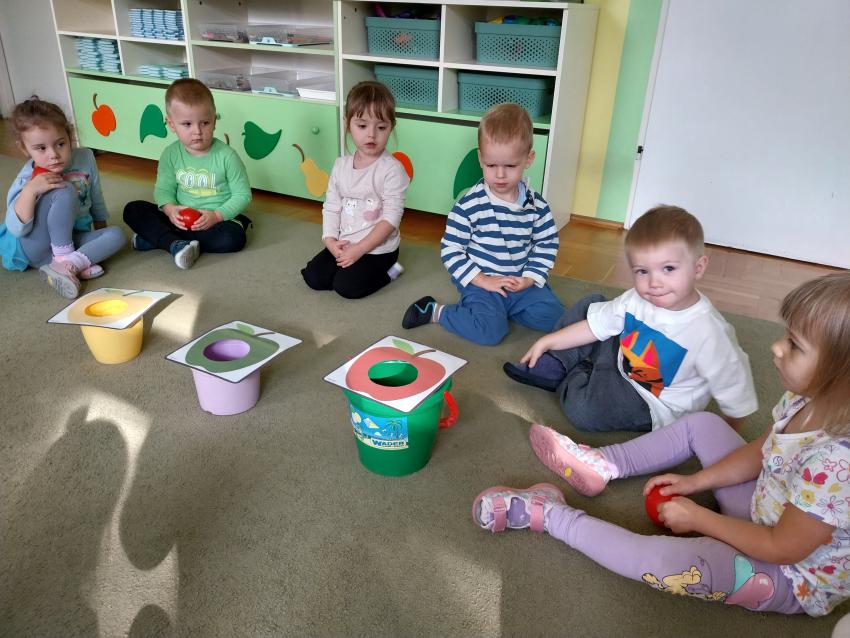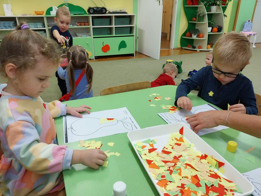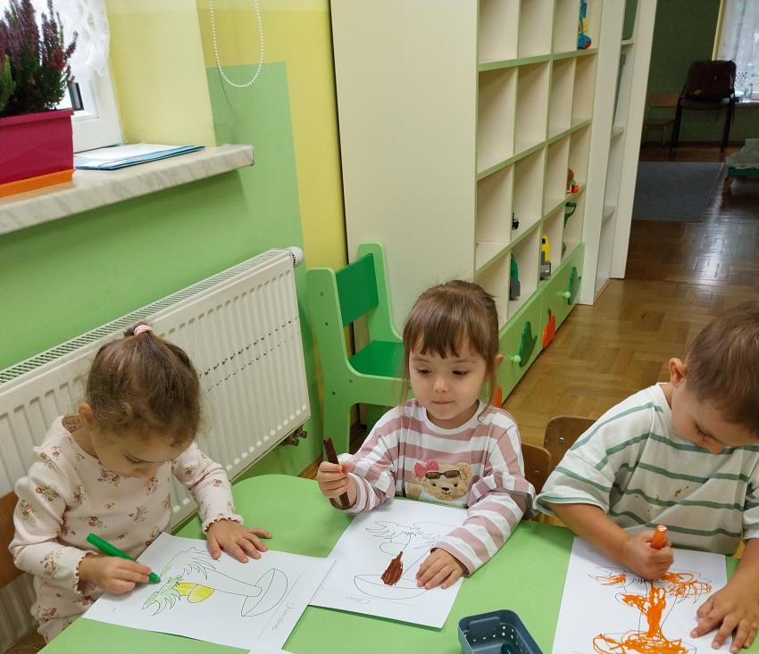 Jesienne zabawy w grupie maluszków.