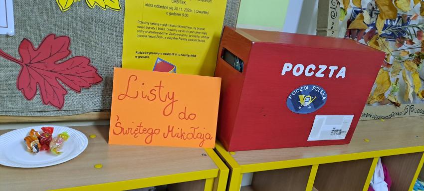 Dzieci z grupy JEŻYKI napisały listy do Świętego Mikołaja.Wrzuciły je do skrzynki,obok której zostawiły dla Mikołaja cukierki. Dziś rano czekała je niespodzianka — listy zniknęły! To znak, że Mikołaj je odebrał.Cukierkami też się poczęstował. Mamy nadzieję, że odwiedzi nas już wkrótce! Nie możemy się doczekać!