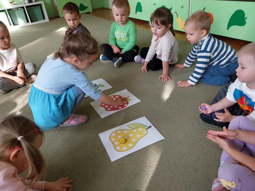 Jesienne zabawy w grupie maluszków.